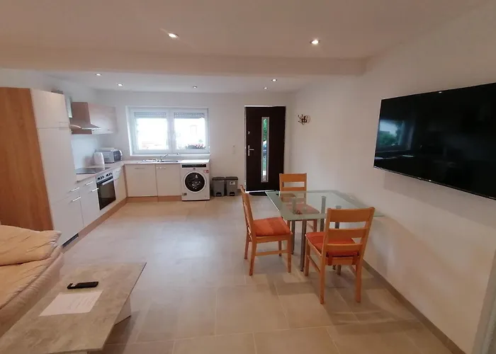 Indkvarteringen er placeret inden for et 10 minutters kørsel fra Neues Theater Burgau. Det er 35 km fra Neu-Ulm og kun 2 km fra centrum af Rofingen. Denne ferielejlighed ligger lige udenfor Sankt Leonhard.